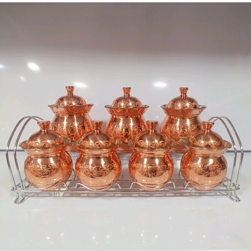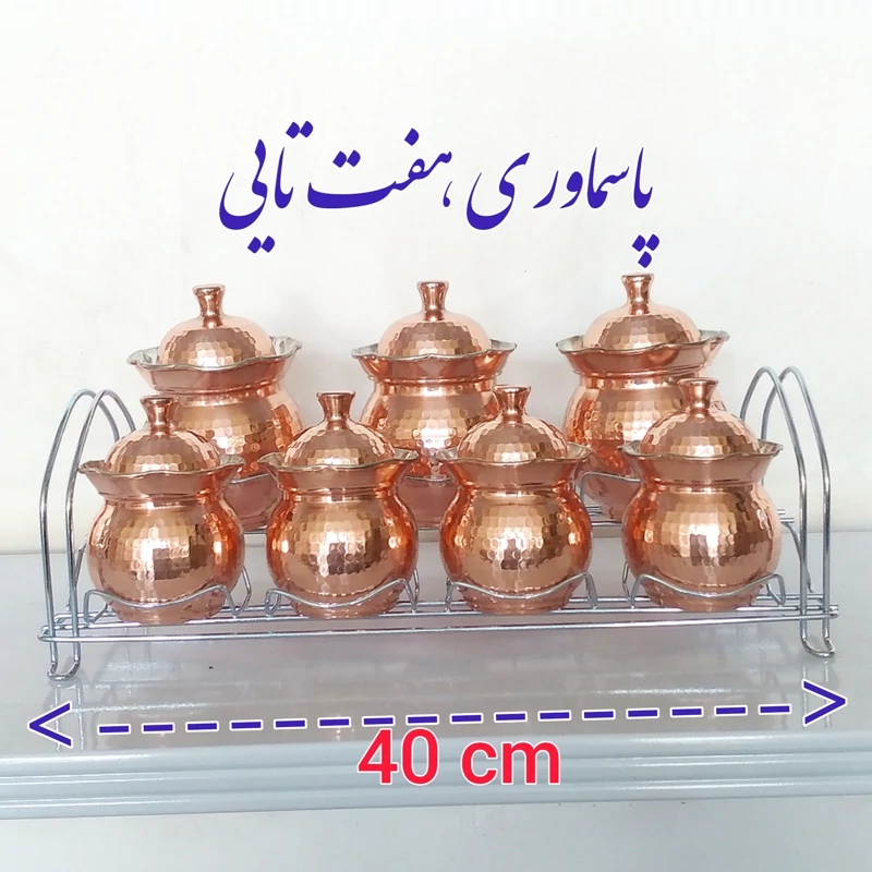 سرویس پاسماوری هفت پارچه مسی رنگ ثابت نانو همراه با استند فلزی