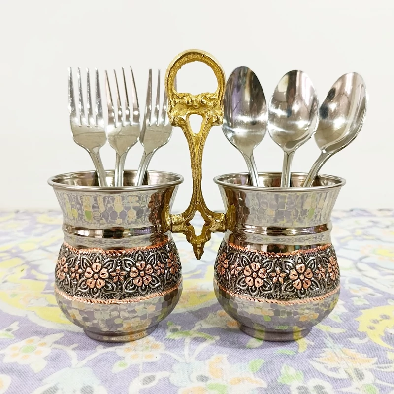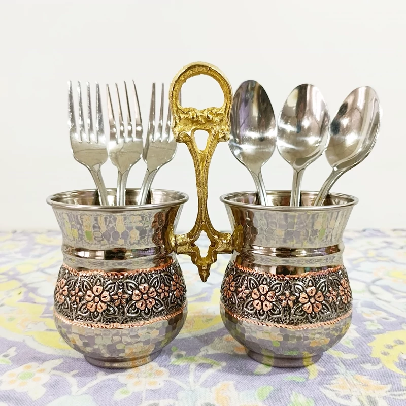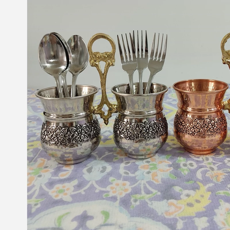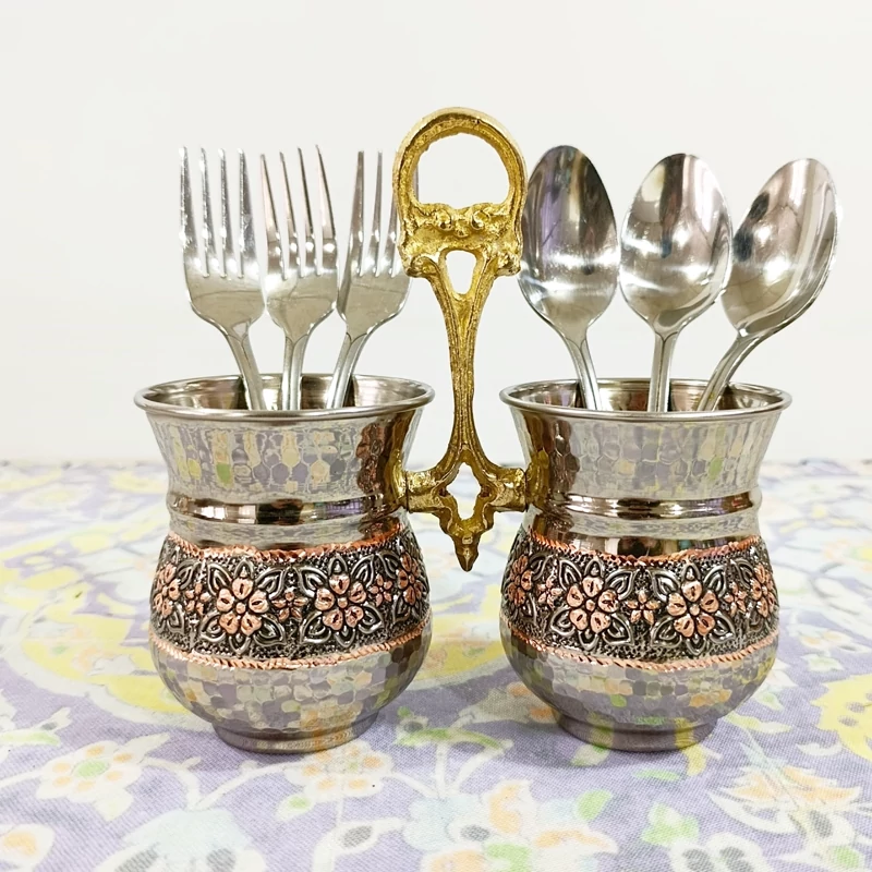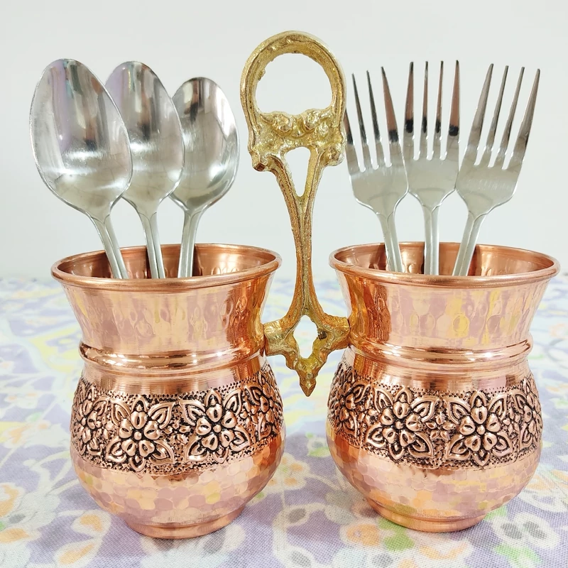 جا قاشقی و جا کاردی مسی طرح گل برجسته کاربرد روزمره در آشپزخانه شما