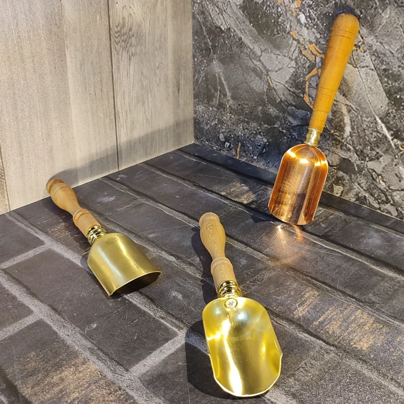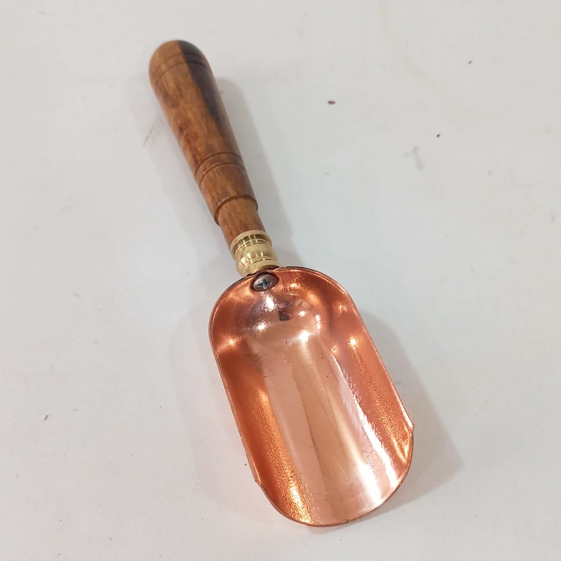 قاشق آجیل مسی دسته چوبی طول 21 سانت در 3 رنگ مسی طلایی کروم
