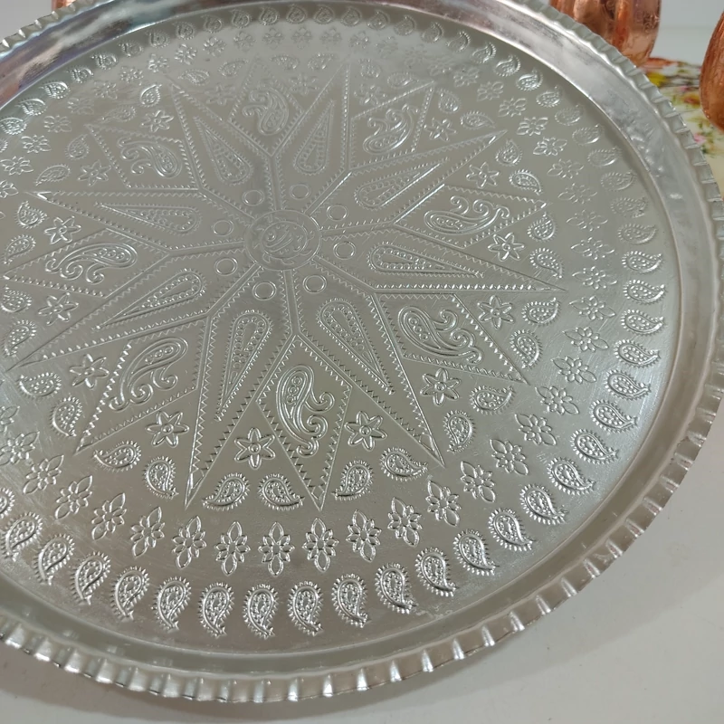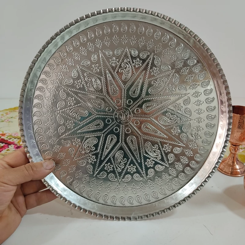 این سینی نهتنها برای پذیرایی چای، میوه، شیرینی و دسر انتخاب خوبیست، بلکه بهراحتی میتوانید آن را به دیوار آویزان کرده و بهعنوان تابلویی هنری از آن لذت ببرید.