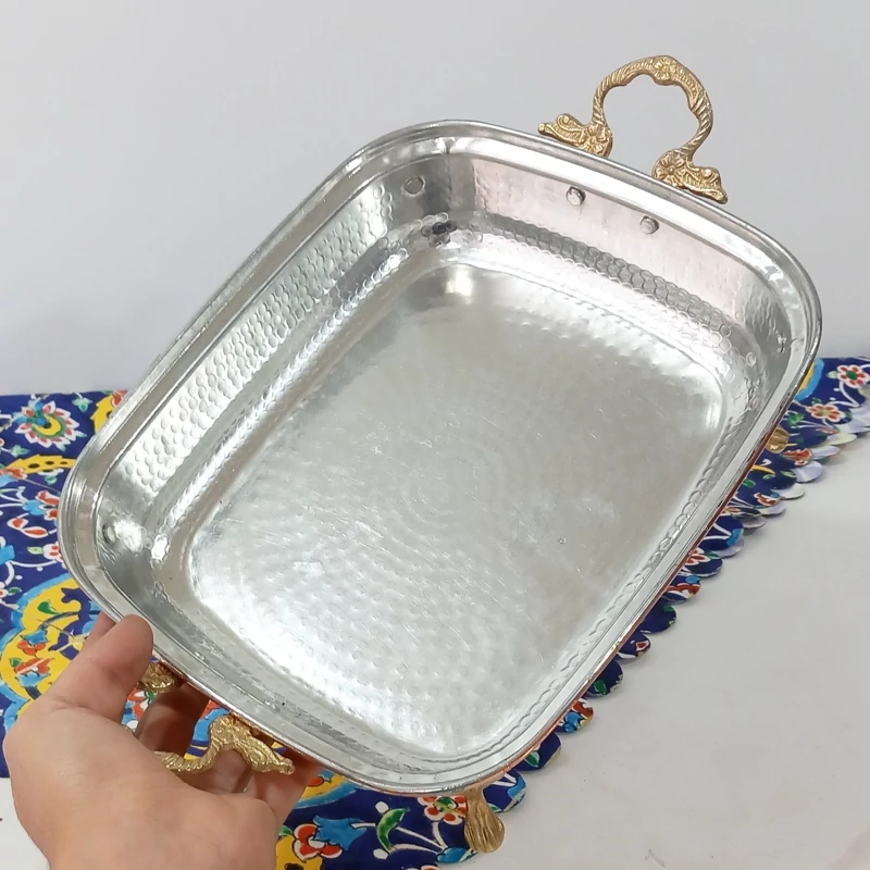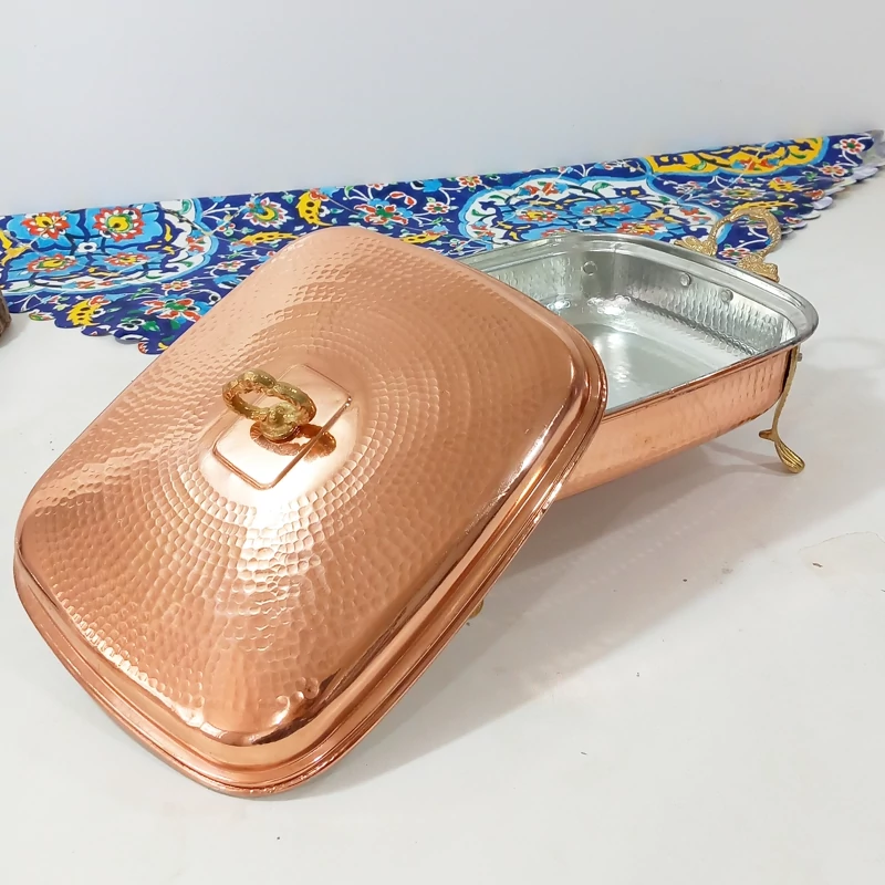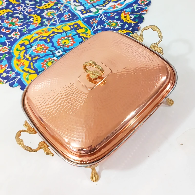 سوفله خوری مسی دسته پایه دار که جنس دسته و پایه برنجی می باشد