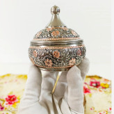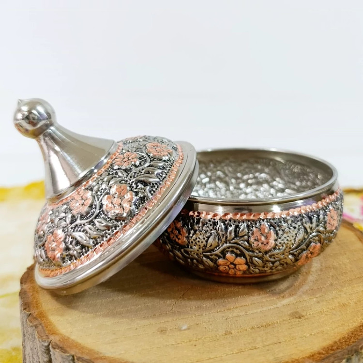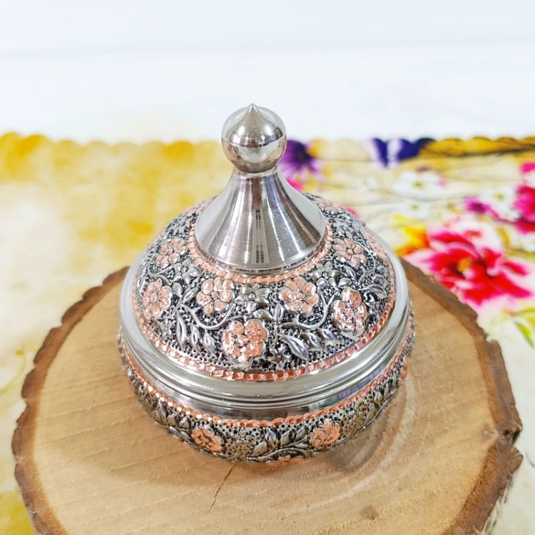 قندان مسی گل برجسته کروم تراش شده دست ساز