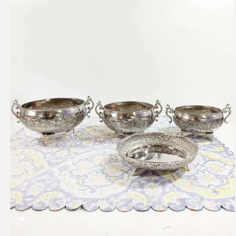 این سرویس پذیرایی خاص، با طراحی گلکاری شده و چکشکاری ظریف، جلوهای شیک و مجلل به میز پذیرایی شما میبخشد. ساختهشده از مس ناب زنجان، با آبکاری کروم براق و پوشش نانو هم انجام میشه مقاومت بالایی در برابر تغییر رنگ، خط و خش و اکسید شدن دارد.