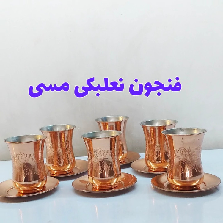فنجان نعلبکی مسی طرح دار زنجان نانو شده کمرباریک