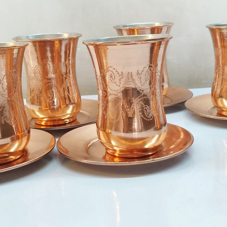 استکان (فنجان) نعلبکی کمر باریک مسی زنجان
