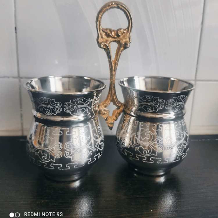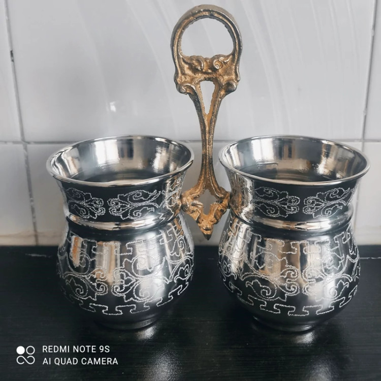 جا قاشقی یا جا کاردی دو قلو تمام مس با روکش کروم رنگ ثابت با طرح دلنشین و جذاب cncکار سنگین با دسته برنجی فوق العاده براق مثل آیینه و کار جدید