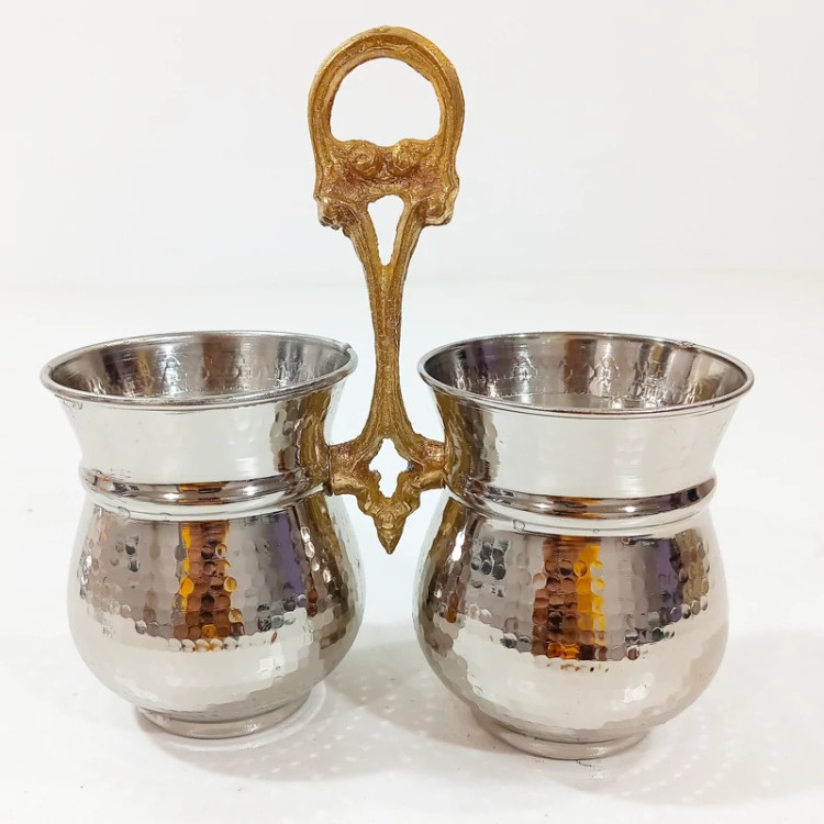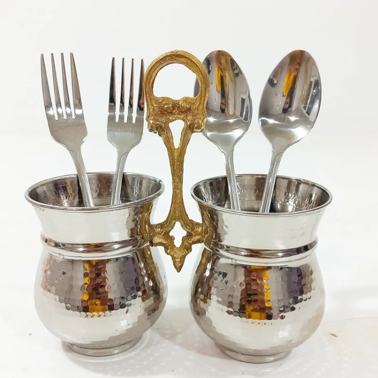 جا قاشقی دوقلو مسی روکش کروم چکش کاری شده