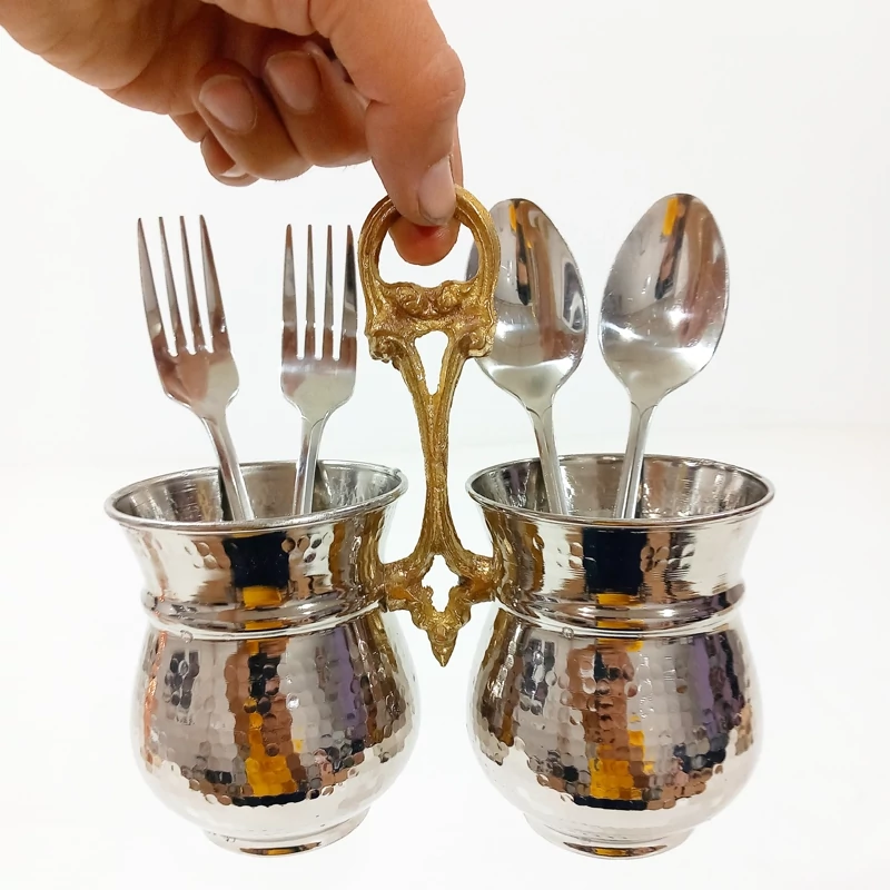 جا قاشقی دوقلو مسی روکش کروم چکش کاری شده