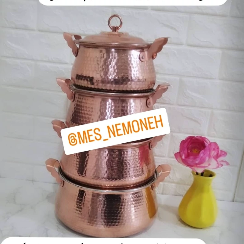 قابلمه مسی سایز ۳ طرح تیانچه ای ۸ نفره ورق ضخیم و سنگین ارتفاع ۲۱ قطر ۲۱سانت فوقالعاده زیبا و کاربردی