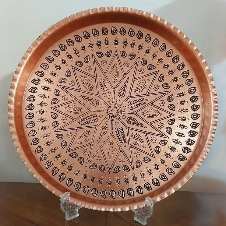 سینی مسی ترمه سیاه قلم سایز 6قطر 28 سانت