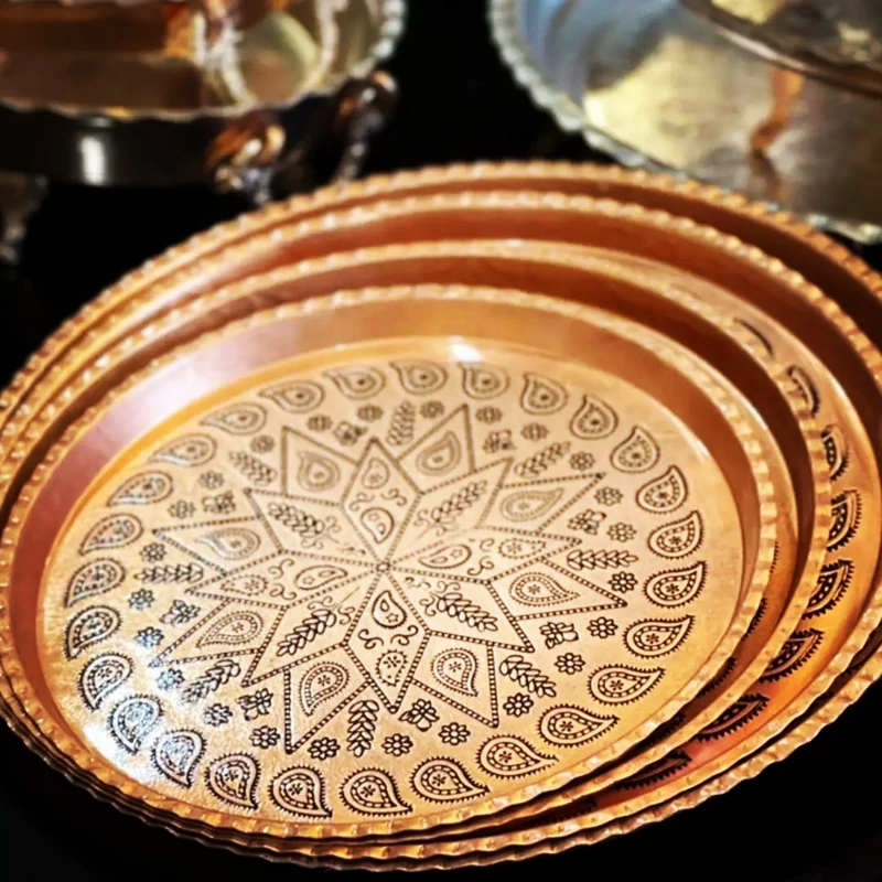سینی مسی ترمه سیاه قلم سایز 6قطر 28 سانت