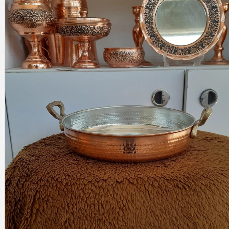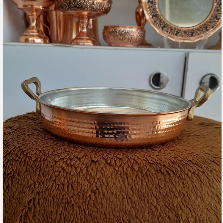 ماهیتابه مسی چکشی یکی از ظروف سنتی و پرکاربرد آشپزی ایرانی است که از مس خالص ساخته شده و سطح آن با روش چکشکاری دستی فرم داده و تقویت میشود. این نوع ساخت باعث میشود ظرف هم زیباتر باشد و هم مقاومت بیشتری در برابر ضربه و حرارت پیدا کند.