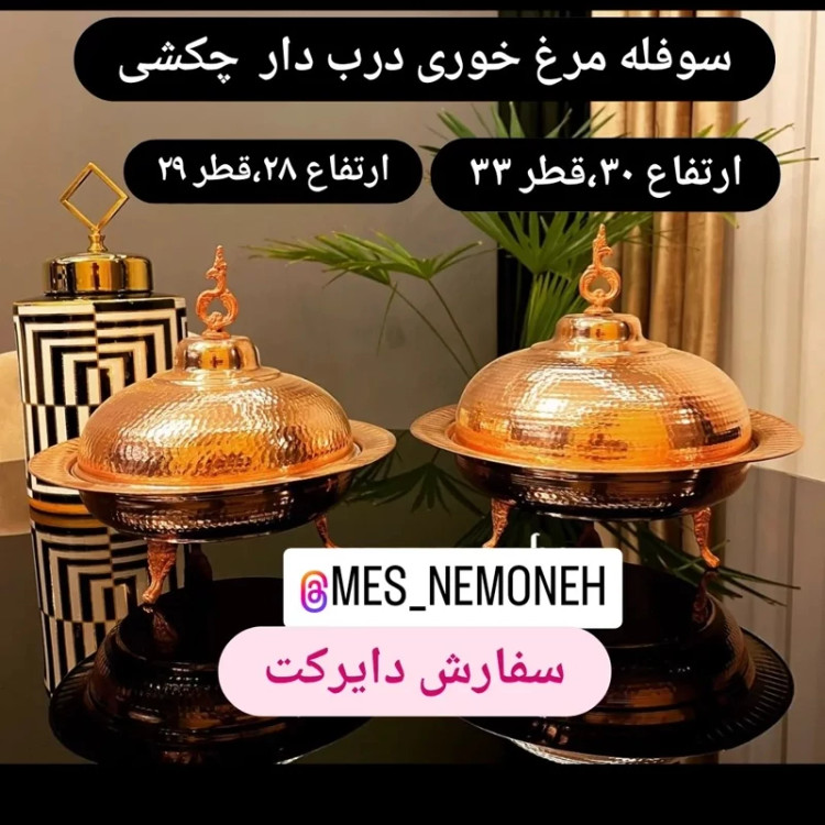 دیس گرد مسی و سوفله مرغ خوری مسی پایه کوتاه سایز 1