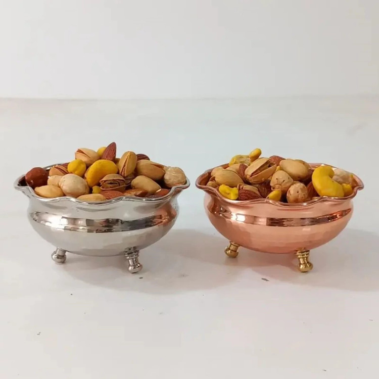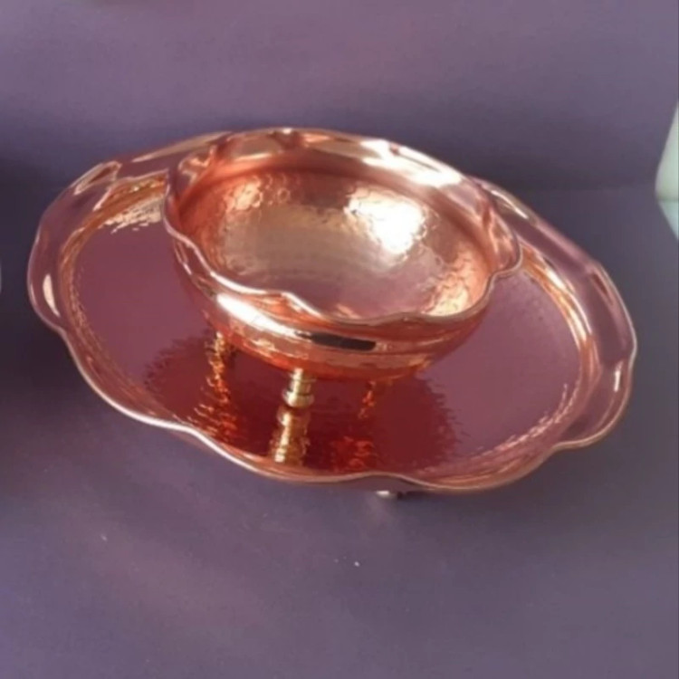 پیش دستی مسی 3 پایه قطر 18 سانت به همراه پیاله 3 پایه مسی قطر 9 سانت قابل سفارش تکی و ست 6 تایی و 12 نفره