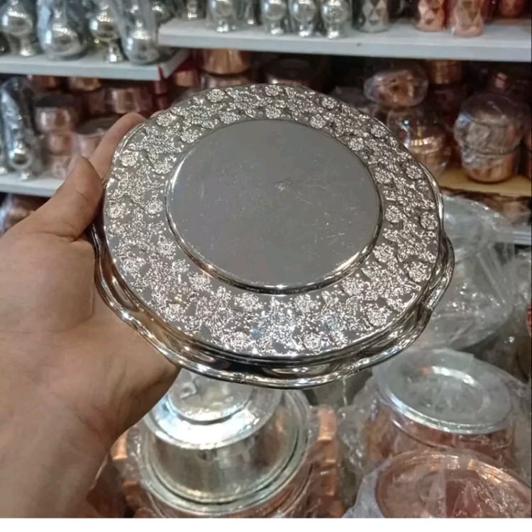 پیش دستی مسی گلبرگ کروم قطر 18.5 سانت مس زنجان نمونه