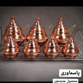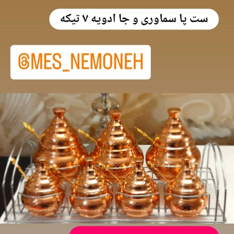 جا ادویه مسی 7 تایی همراه استند سایز بزرگ ارتفاع 20 دهانه 10 سایز کوچک ارتفاع 10.5 دهانه 5.5
