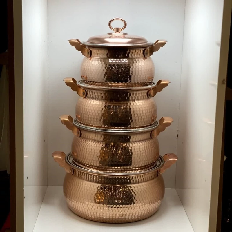 سرویس قابلمه مسی که با ظرافت و کیفیت خیلی زیاد ساخته شده ،ساخته ی دست هنرمندان و مسگران ماهر زنجان هست.
