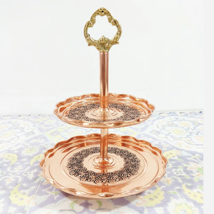 🧁 شیرینیخوری دو طبقه مسی سیاه قلمزنیشده
