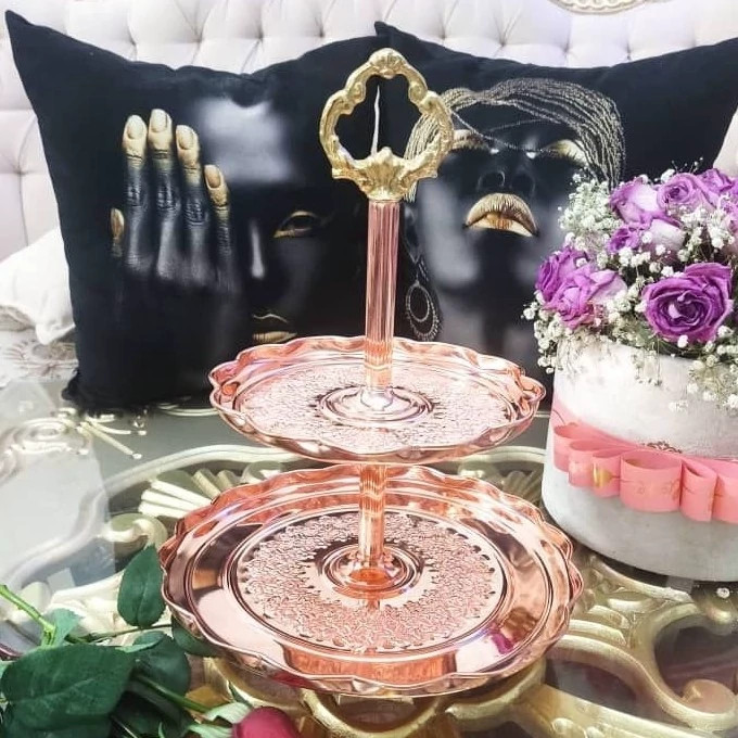 شیرینی خوری مسی دو طبقه گلبرگ سیاه قلم