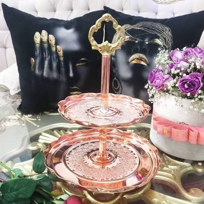 شیرینی خوری مسی دو طبقه گلبرگ سیاه قلم