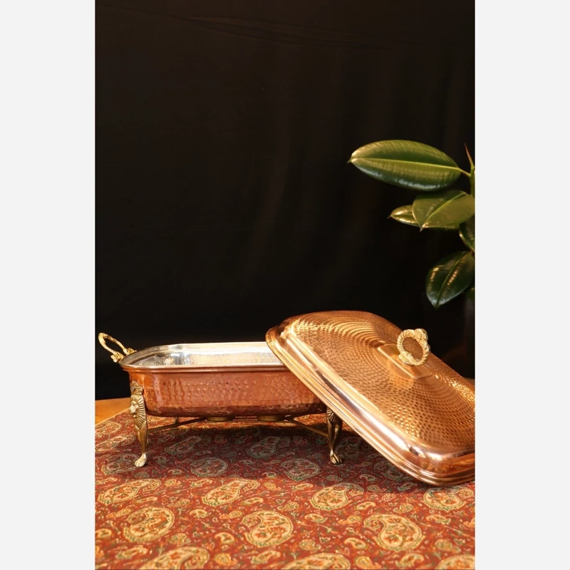 «سوفله مسی وارمردار» معمولاً به ظرف سرو غذا از جنس مس گفته میشود که دارای وارمر (Warmer) یا شمعک گرمکن در قسمت زیرین است. این وسیله برای گرم نگه داشتن غذا روی میز استفاده میشود و در پذیرایی رسمی و دورهمیها کاربرد زیادی دارد.