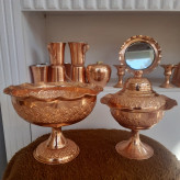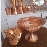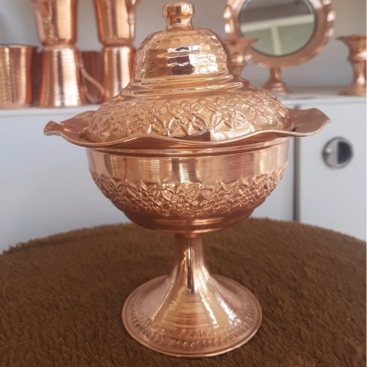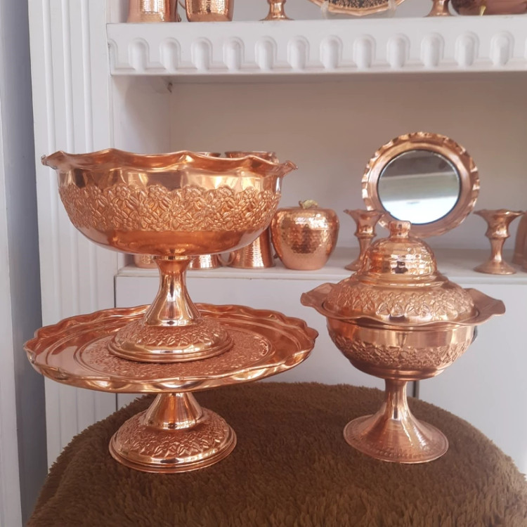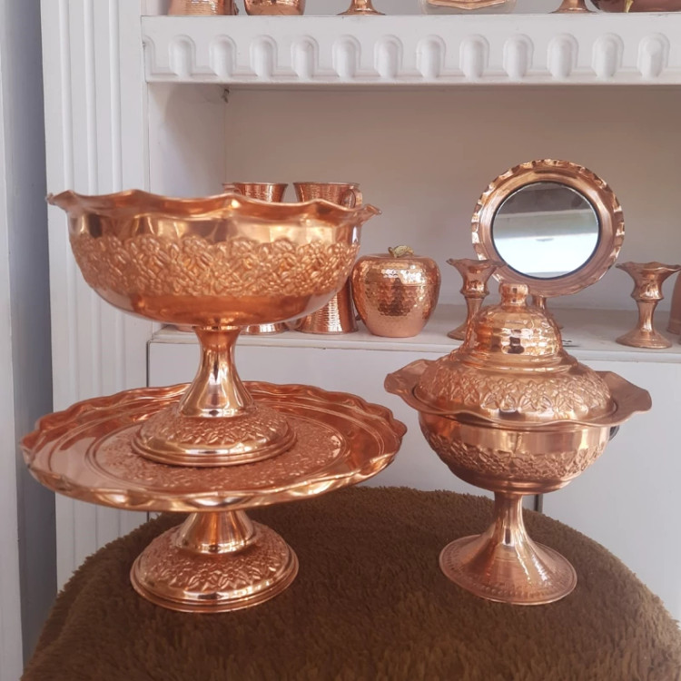سرویس پذیرایی مسی گل برجسته، ترکیبی از ظرافت هنر دست ایرانی و درخشش چشمنواز فلز مس است. این مجموعه زیبا با طراحی گلهای برجسته و حکاکیهای هنرمندانه، جلوهای باشکوه و سنتی به میز پذیرایی شما میبخشد.
