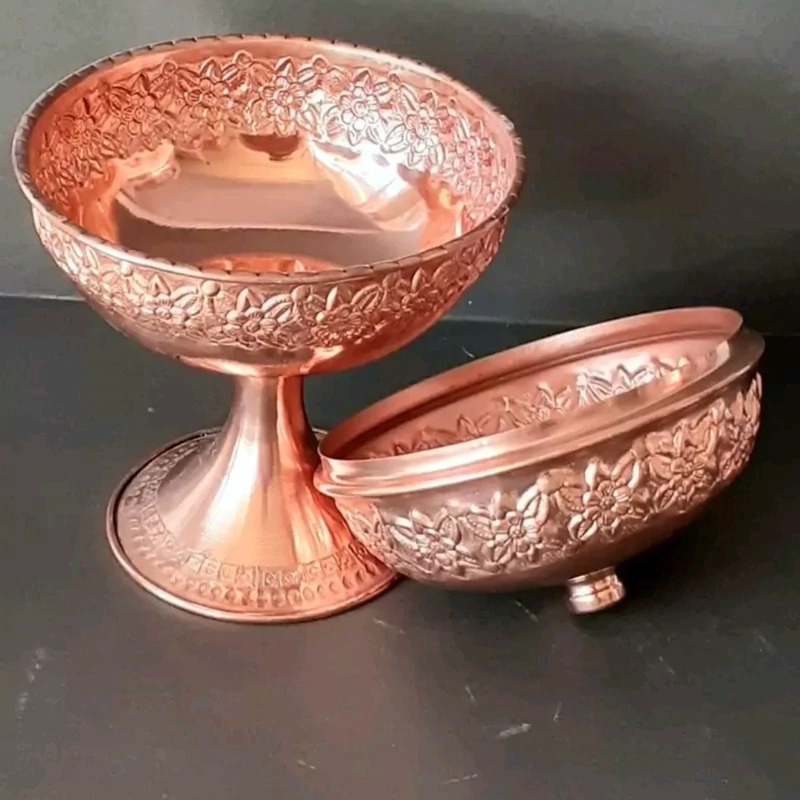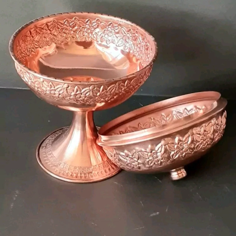 قندان مسی پایه دار طرح رز گل برجسته ارسال رایگان نانو شده