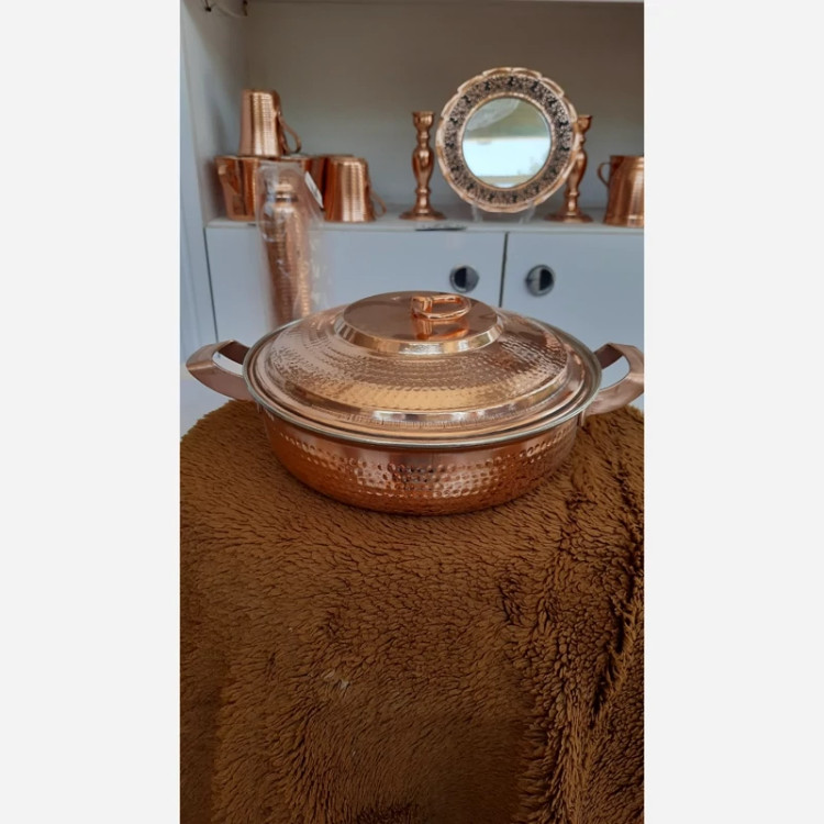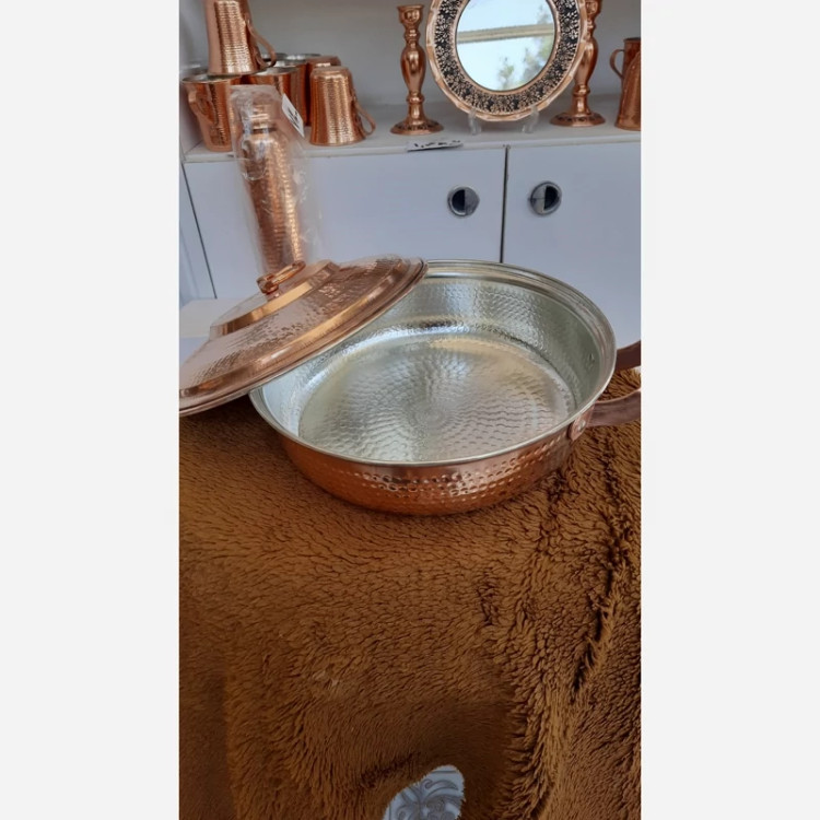 ماهی تابه مسی سایز 4 قطر 25 شش نفره دو دسته درب دار