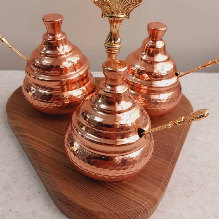 جا ادویه و جامربایی 3 تایی همراه استند چوبی ارتفاع 10.5 دهانه 5.5 سانت مناسب شکرریز. جادویه .جا مربایی