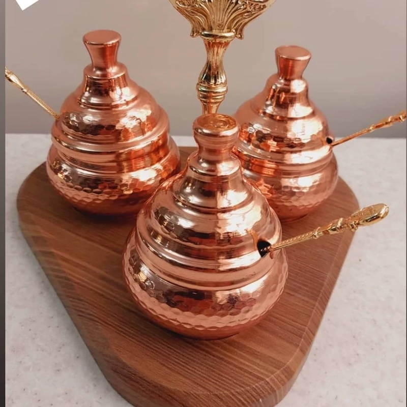 جا ادویه و جامربایی 3 تایی همراه استند چوبی ارتفاع 10.5 دهانه 5.5 سانت مناسب شکرریز. جادویه .جا مربایی