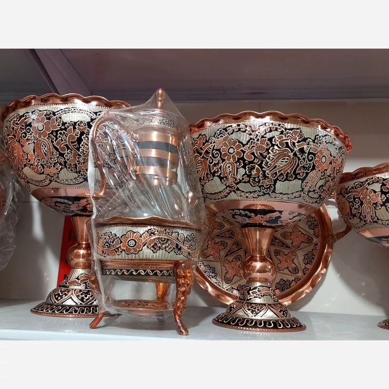 بدنه این جام از مس باکیفیت ساخته شده و نقوش آن با مفتولهای نقره بهصورت دستی روی سطح کار کوبیده شدهاند. طرحهای اسلیمی و سنتی بهکاررفته در این محصول، آن را به گزینهای ایدهآل برای هدیههای خاص، جهیزیه و دکوراسیون کلاسیک و سنتی تبدیل کرده است.
