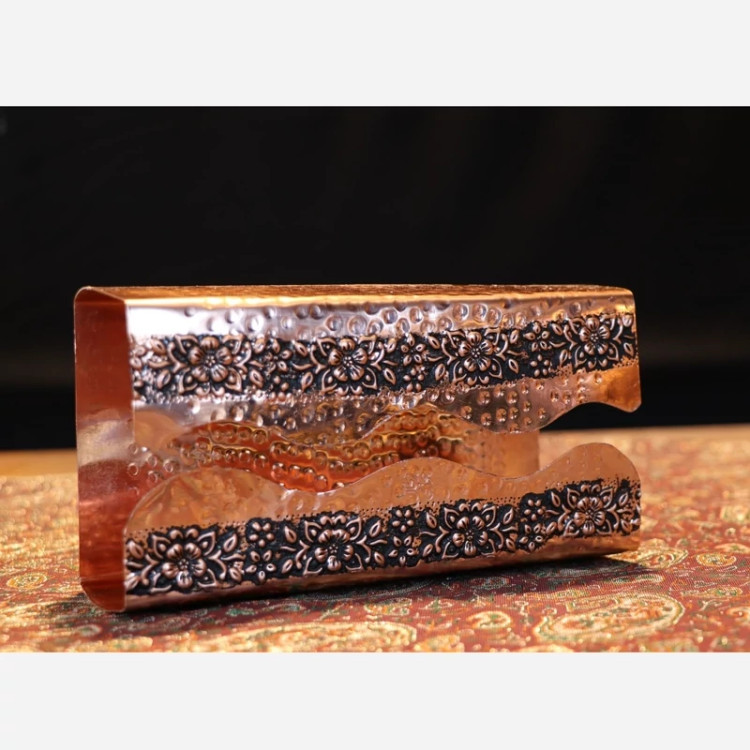 جا دستمالی مسی گلبرگ سیاه قلم رنگ مسی