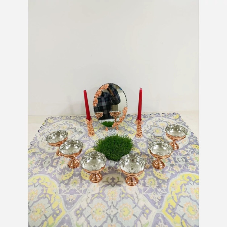 پیاله مسی پایه دار چکشی 1 عددی بستنی خوری و تنقلات خوری مسی ارتفاع 10 قطر 9
