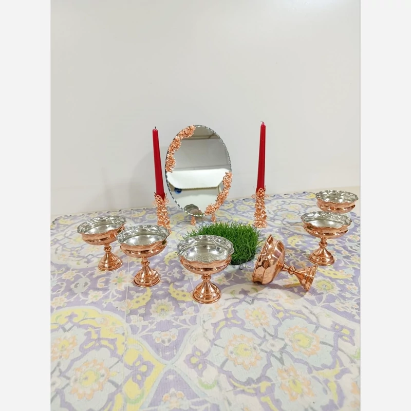 پیاله مسی پایه دار چکشی 1 عددی بستنی خوری و تنقلات خوری مسی ارتفاع 10 قطر 9