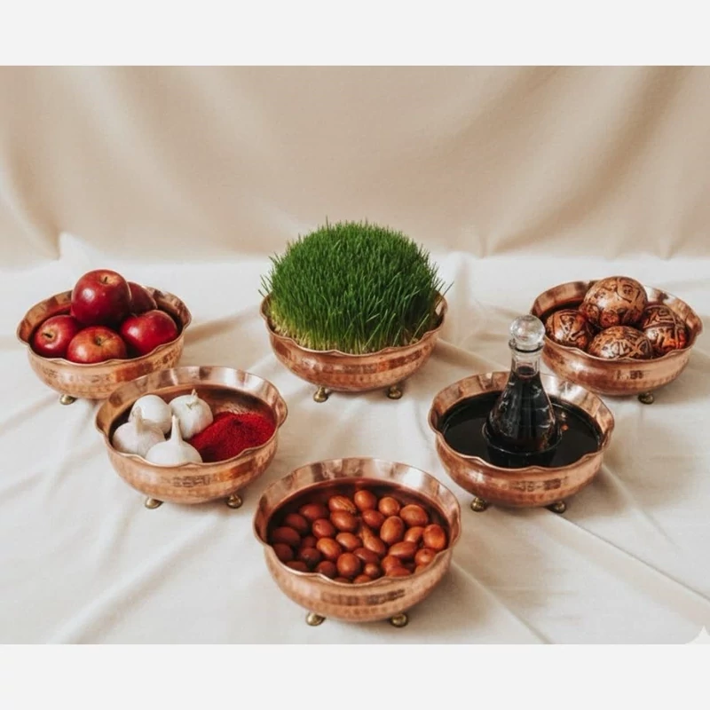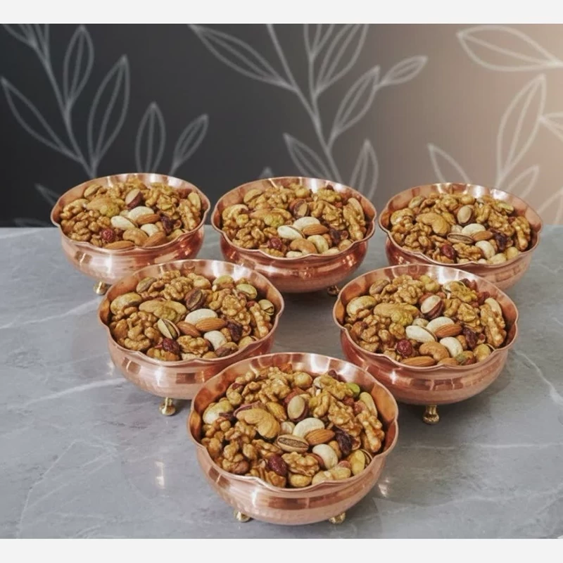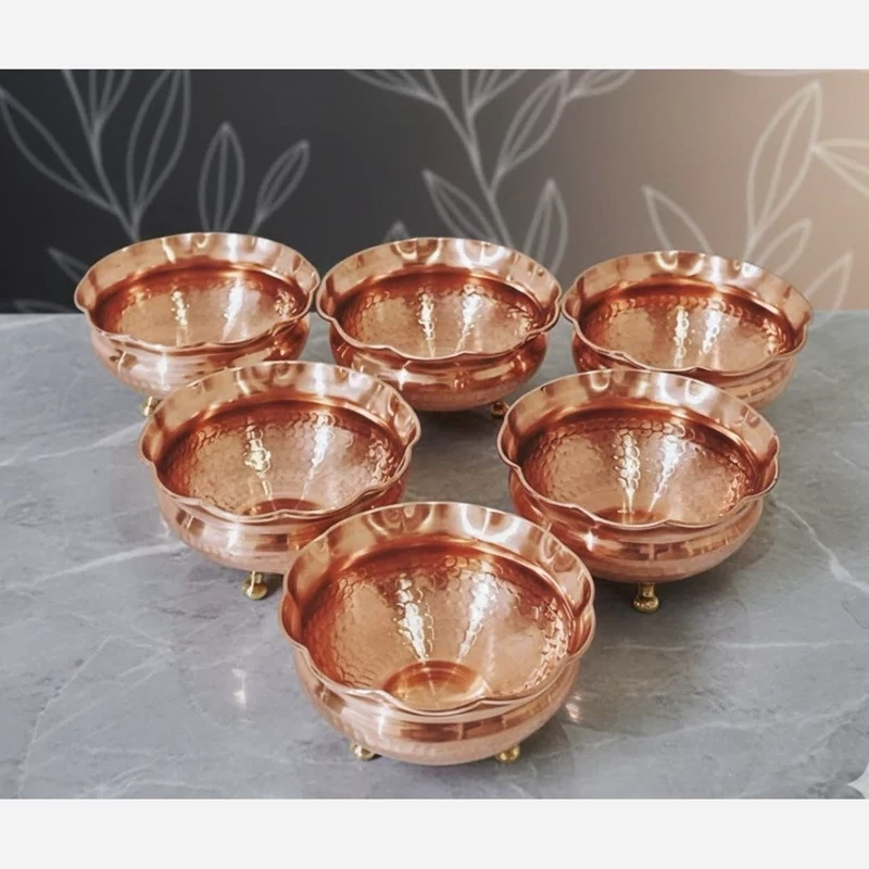 6 عدد پیاله مسی سه پایه قطر 9 سانت