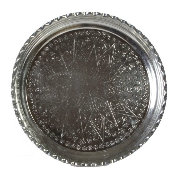 داخل سینی با نقوش اسلیمی قلم زنی شده است.