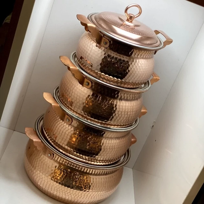 سرویس قابلمه مسی که با ظرافت و کیفیت خیلی زیاد ساخته شده ،ساخته ی دست هنرمندان و مسگران ماهر زنجان هست.