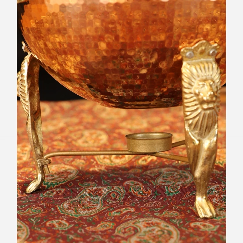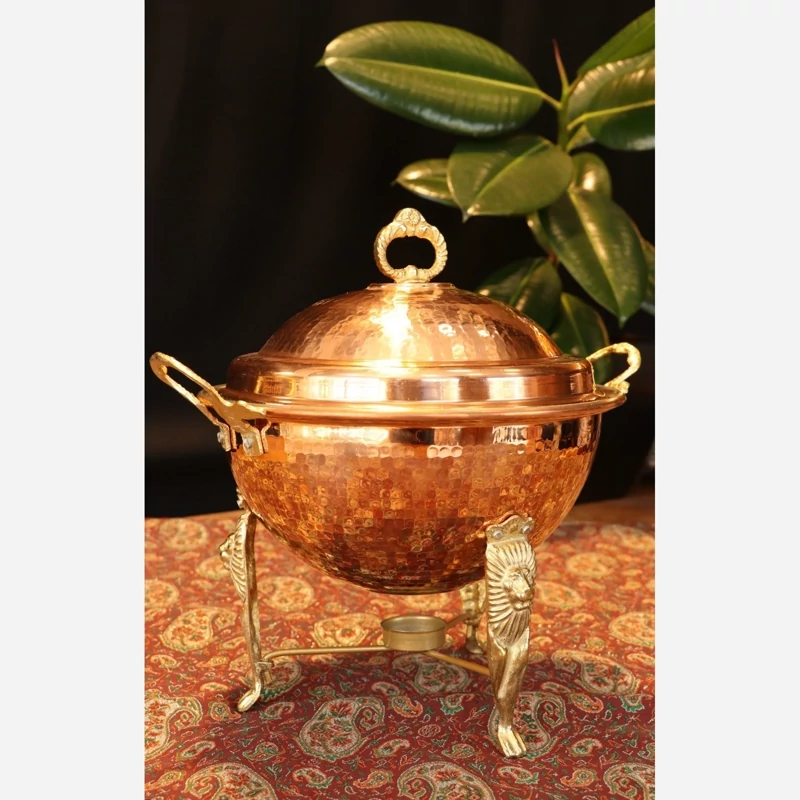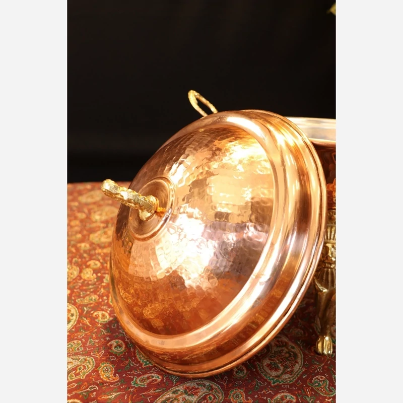 در ساخت سوفله خوری مسی زنجان مدل فریحا از بهترین ورق مس با خلوص 99/99% استفاده شده است ، روی سطح ظرف کاملا منظم چکشکاری شده است ، پایه ها و دسته های سوفله خوری مسی گرد چکشی زنجان | سوپ خوری مسی وارمردار پایه بلند | 2/5 لیتر | مدل فریحا از بهترین فلز برنج ریخته گری شده است. قسمت وارمر سوفله خوری مسی از جنس استیل آبکاری طلایی میباشد و اندازه شمع های استاندارد بازار میباشد.