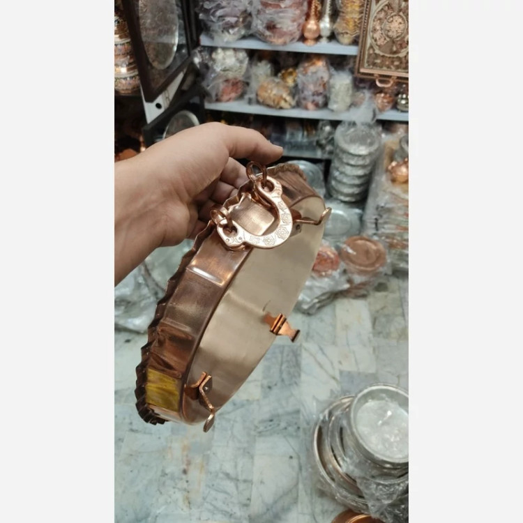 دیس دایره مسی گوشواره دار سایز 3 قطر 32 سانت در مس زنجان نمونه