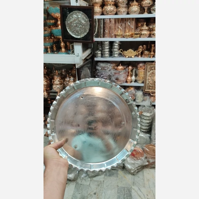 دیس دایره مسی گوشواره دار سایز 3 قطر 32 سانت در مس زنجان نمونه