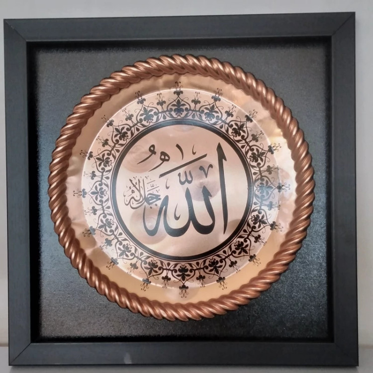 تابلو دیوارکوب مسی نانو شده با قاب الله و وان یکاد و چهار قل