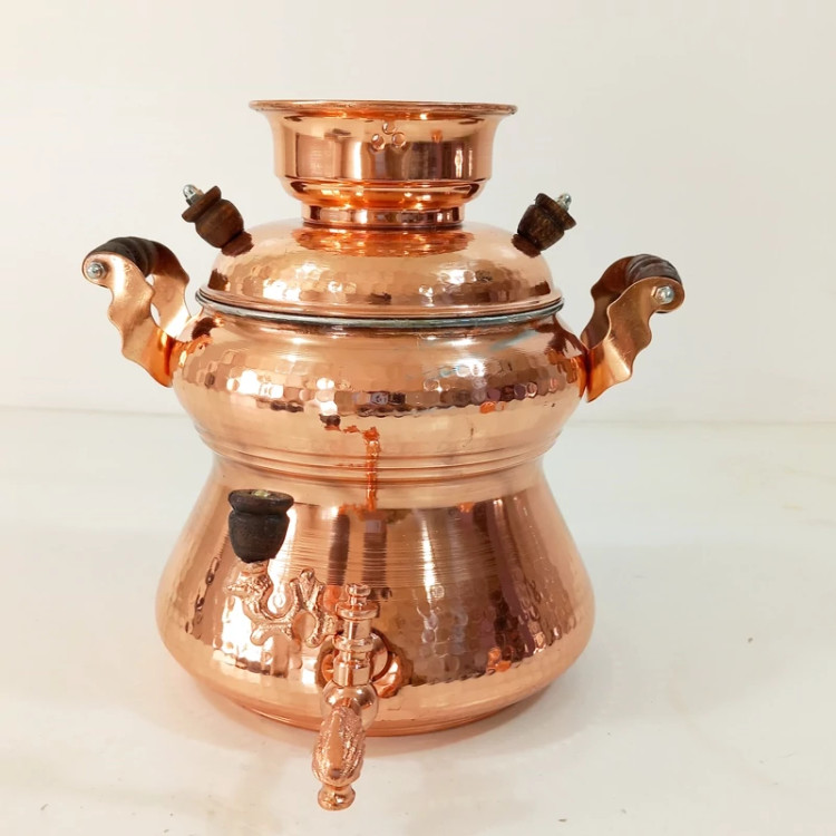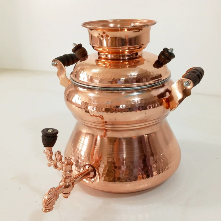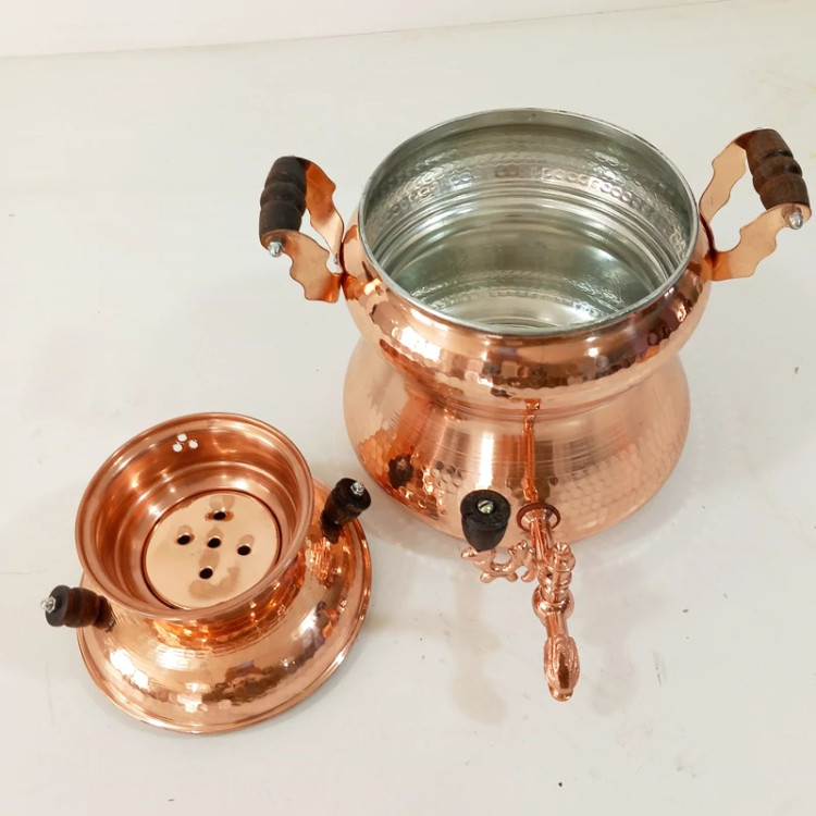 کتری روگازی مسی با قوری ظرفیت حدودا سه و نیم لیتری چکشی نانو شده رنگ ثابت
