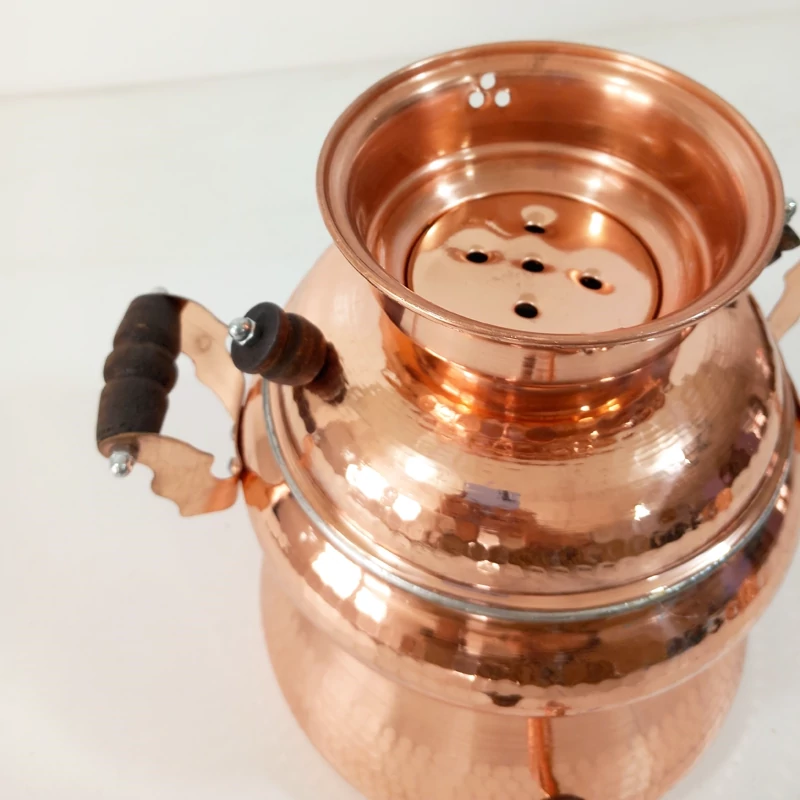 کتری روگازی مسی با قوری ظرفیت حدودا سه و نیم لیتری چکشی نانو شده رنگ ثابت
