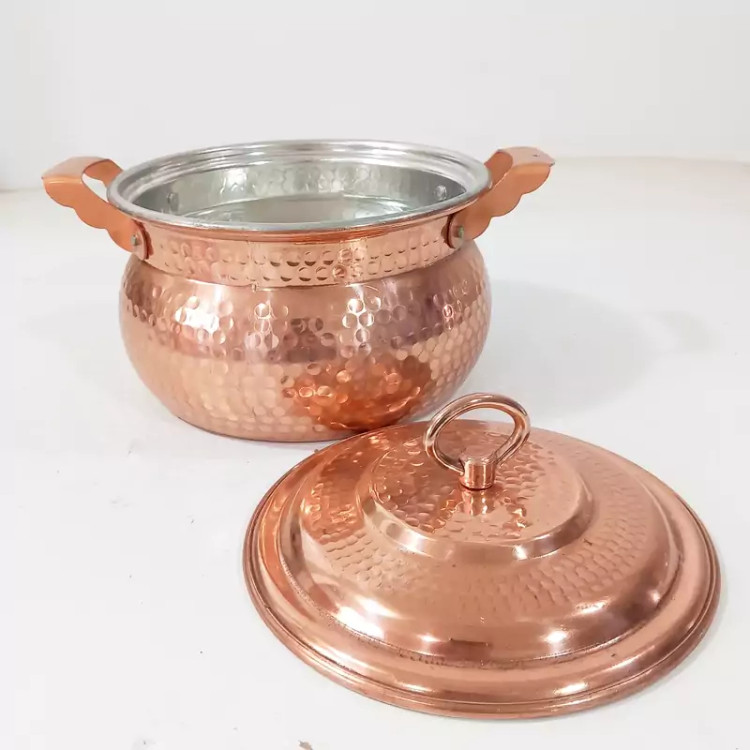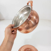 قابلمه مسی زنجان قطر22 طرح شکمی سایز 3 شش نفره نانو شده رنگ ثابت
