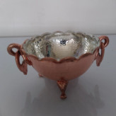 پیاله 3 پایه گوشواره دار . 6عددی باهم کلا نانو می باشد که اصلا کدر نمیشود و تغییر رنگ نمیدهد چکش کاری شده و داخل قلع شده است وزن یک عدد تقریبا 230گرم است