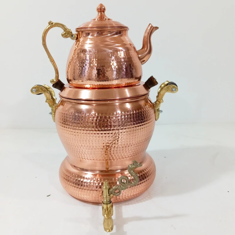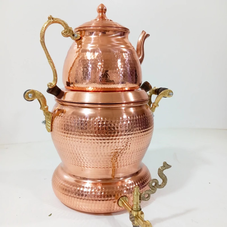 سماور روگازی شیر دار همراه قوری مسی رنگ ثابت و نانو شده مقاوم در حرارت