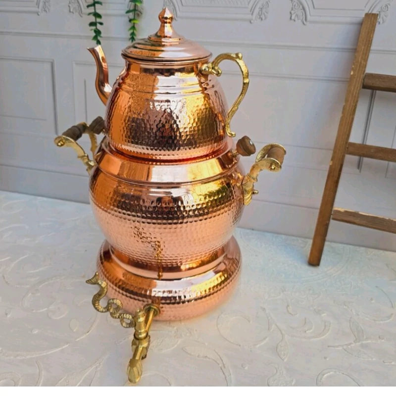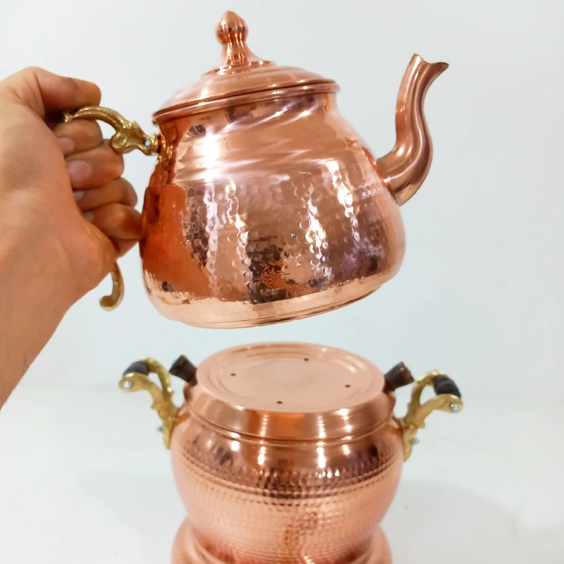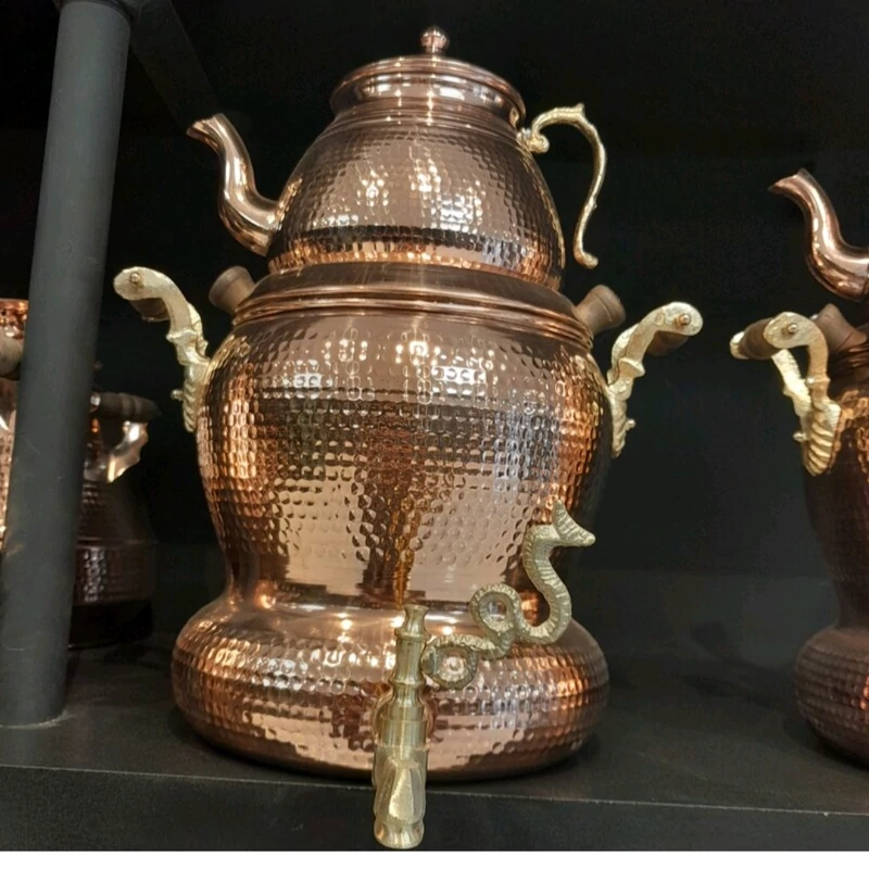 سماور روگازی شیر دار همراه قوری مسی رنگ ثابت و نانو شده مقاوم در حرارت