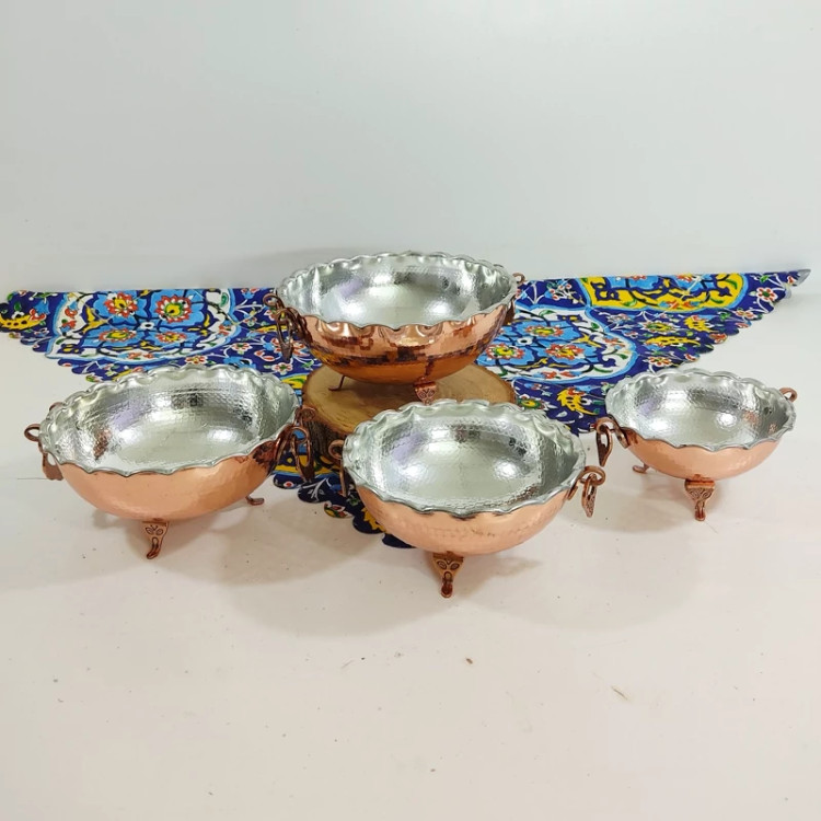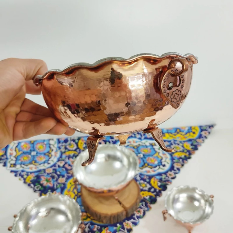 کاسه مسی گوشواره دار در 5 سایز داخل قلع اعلا میوه یا سوپ آجیل و... ارسال رایگان