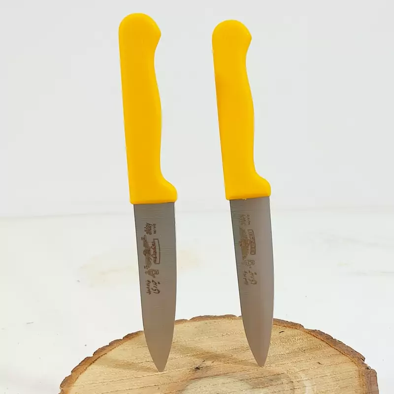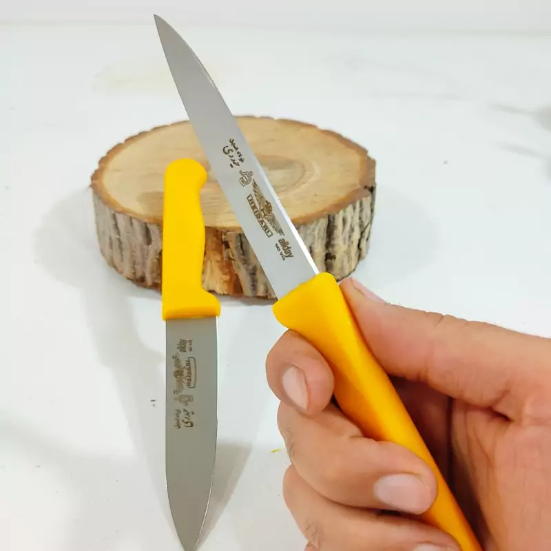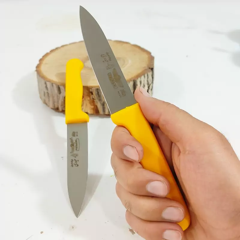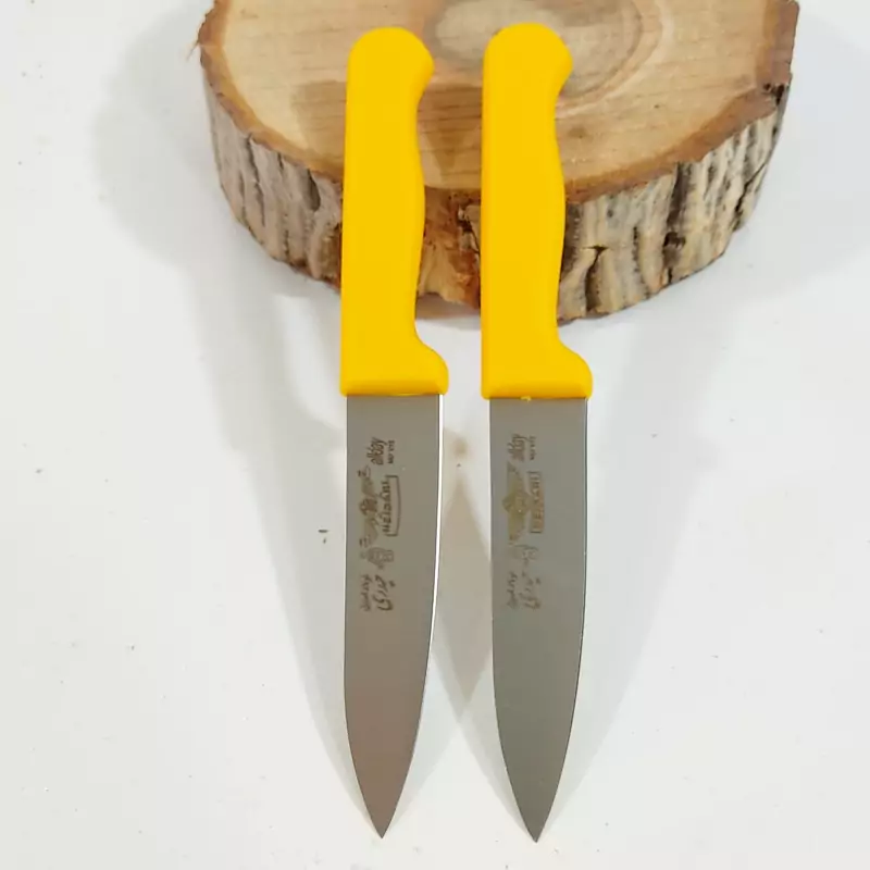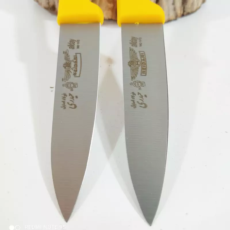 دو عدد چاقوی دم دستی اعلای زنجان برند حیدری دسته زرد تیغه ضد زنگ بسیار باکیفیت طول 21 تیغه با ضخامت بالا حتما فیلم محصول رو ببینید ضمانت برگشت درصورت عدم رضایت و تیز نبودن تعداد بیشتر در گفتگو