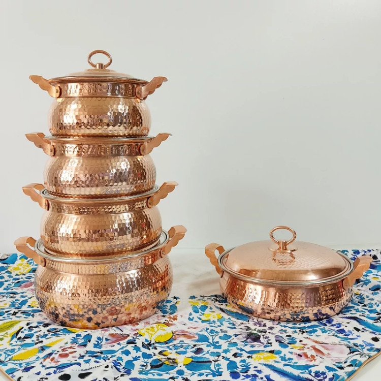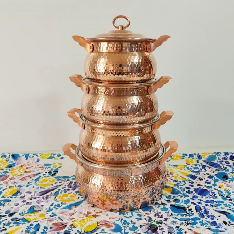 سرویس قابلمه شکمی تمام مسی زنجان 4 تیکه رنگ ثابت ضمانت برگشت